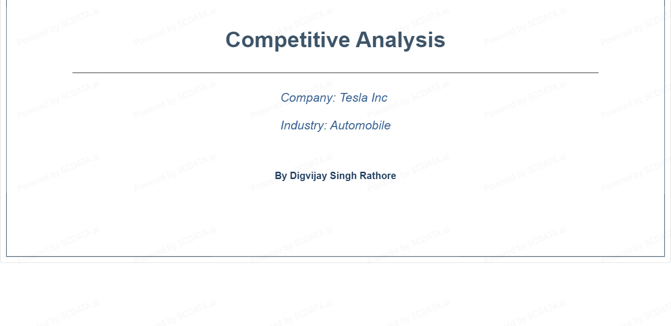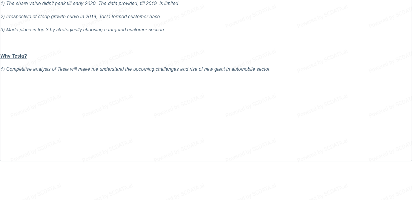 1) Competitive analysis of Tesla will make me understand the upcoming challenges and rise of new giant in automobile sector.