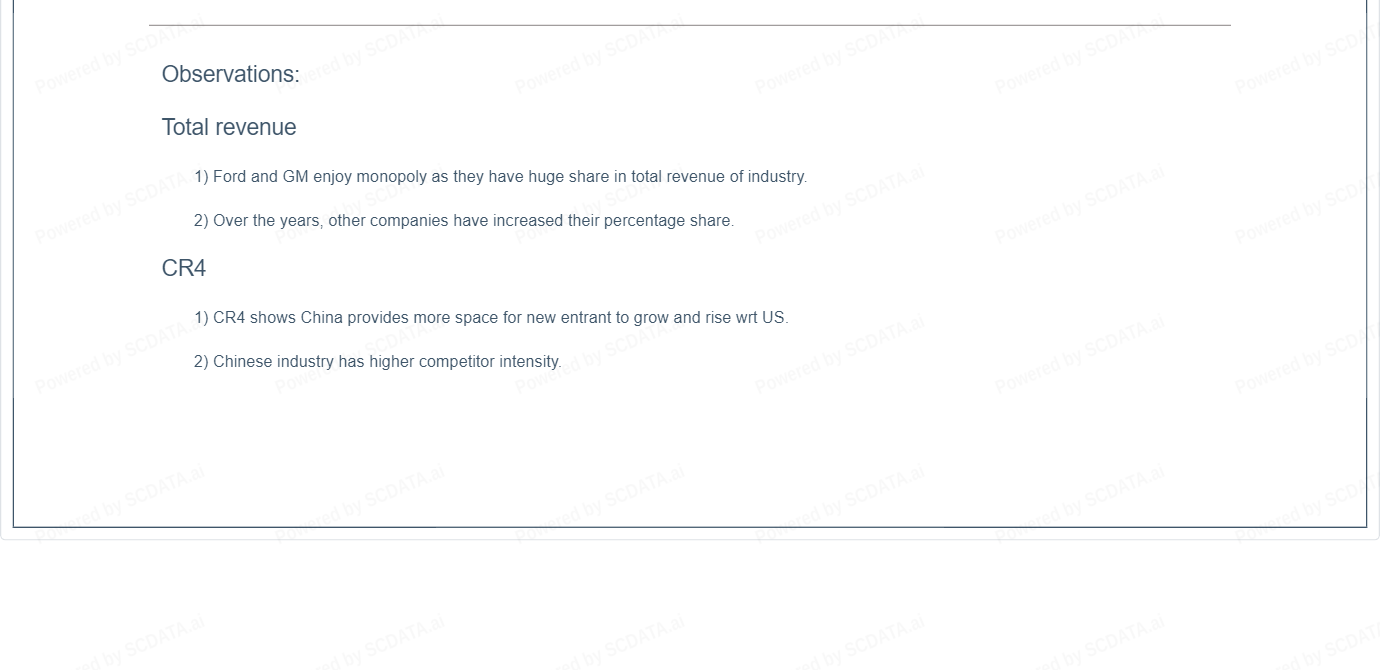 1) Ford and GM enjoy monopoly as they have huge share in total revenue of industry.