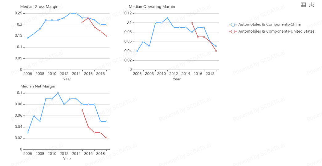1) Typical company performance is going down both in US and China => Indicates more challenging situation in recent years to make profit.