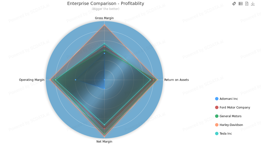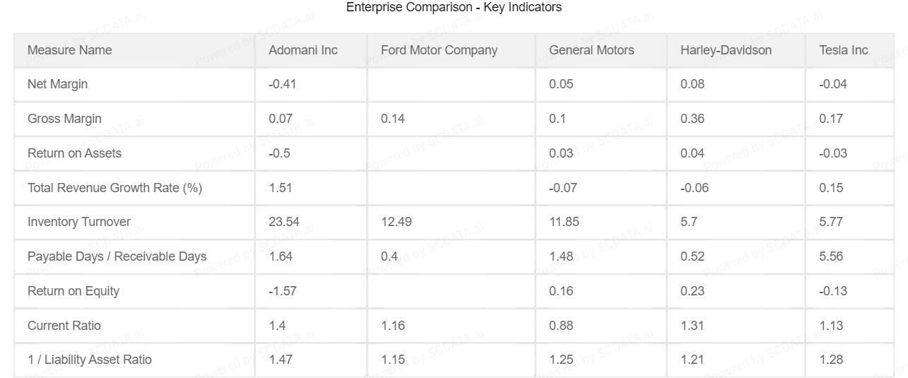 Margins have remained almost stagnant in the industry with minor lower trend in Gross margin. Adomani Inc has improved it's profitability in recent years.