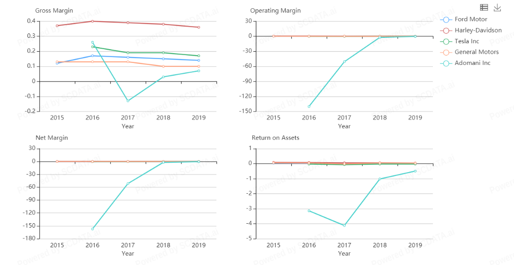 Adomani Inc is the weakest among these. These observations are consistent with the stock prices (2019)