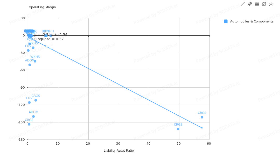 As shown by the picture, a higher liability asset ratio(X) may lead to a lower operating margin(Y) for the years from 2015 to 2018. One explanation is that, a higher liability asset ratio may incur a higher other cost in the income statement, which can reduce the operating margin.