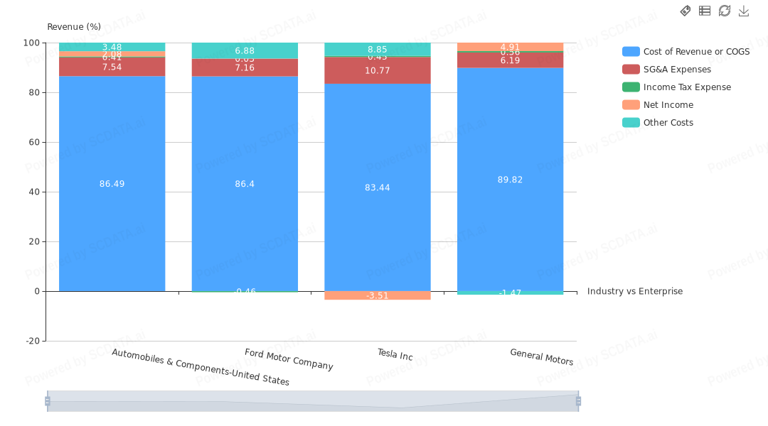 Tesla's COGS ~ Industry Average but other costs are much bigger and thus leading to poor net income wrt others.