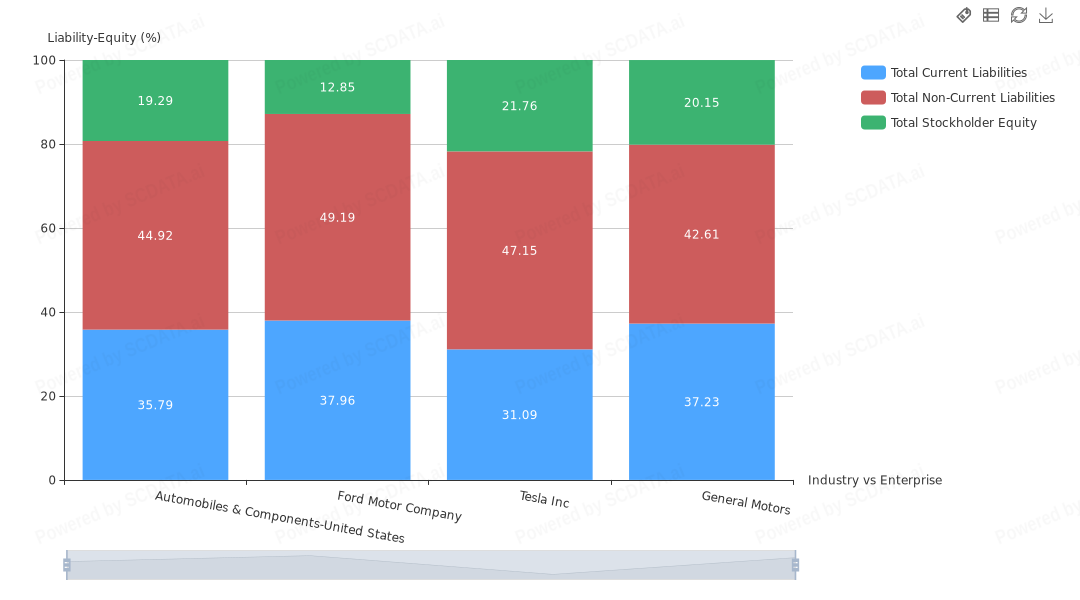 Tesla and GM have similar profiles as industry average. Ford has least equity among these 3.