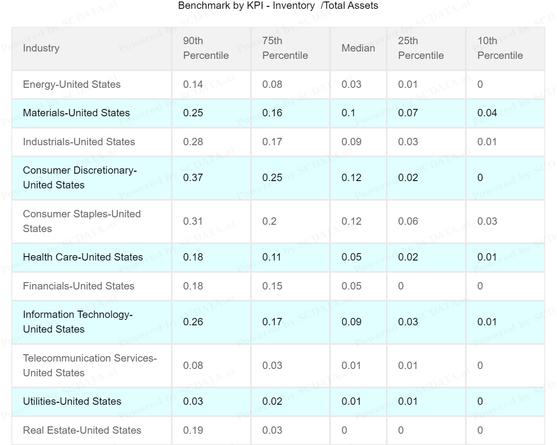 In the United States, the inventory of Consumer Staples and Consumer Discretionary accounts for the largest proportion of total assets, followed by materials and information technology industries. While the ratio of remaining financial services, communication services and utilities is not high.