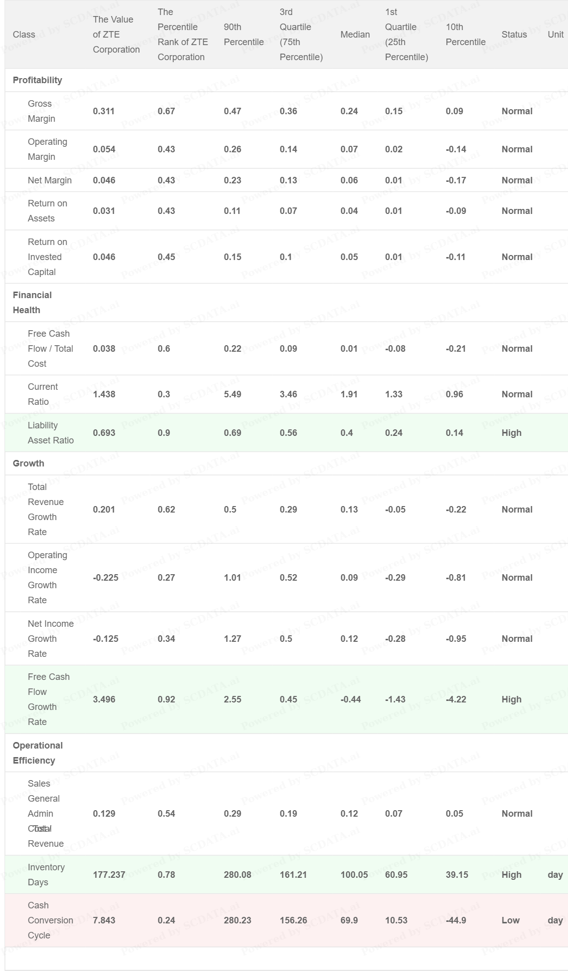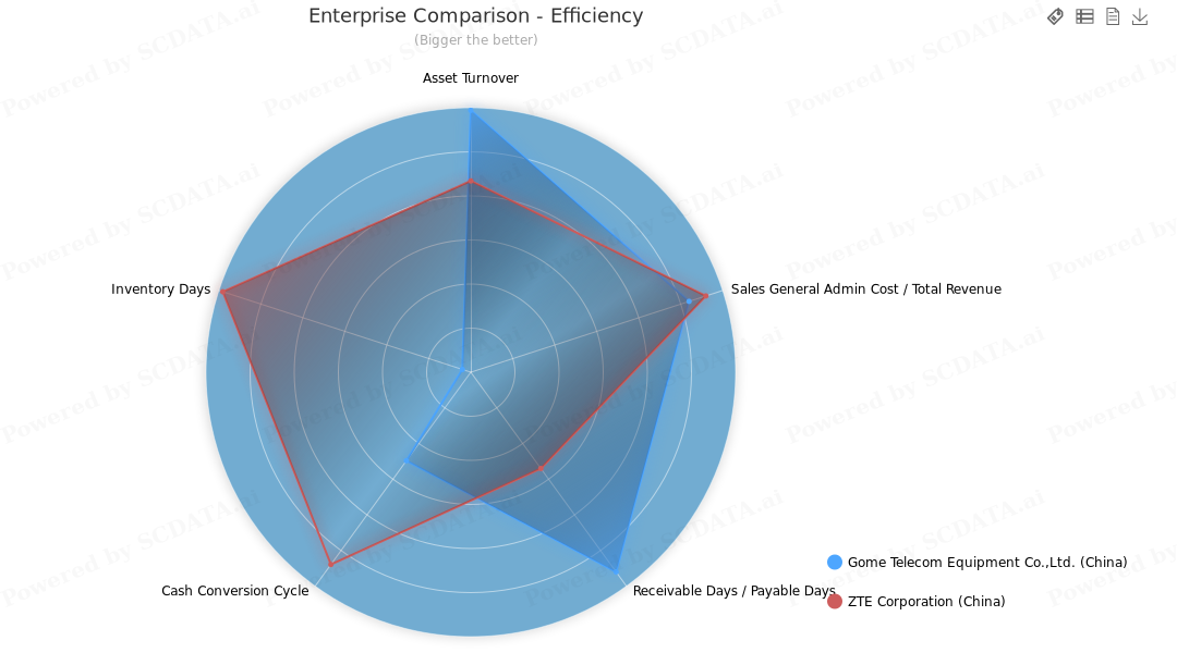 ZTE has significantly more days of inventory than Gomez, which has a much faster and more efficient inventory flow. It is worth noting that both companies have a negative cash conversion cycle, proving that both companies are able to move cash quickly and may have early payments such as bookings. ZTE's labor productivity is higher than Gome's, indicating that each employee at ZTE can create more value for the company. ZTE's days receivable/days payable are lower than Gomez's, meaning that ZTE is able to collect more quickly from its customers and has a better ability to balance receivables and payables.