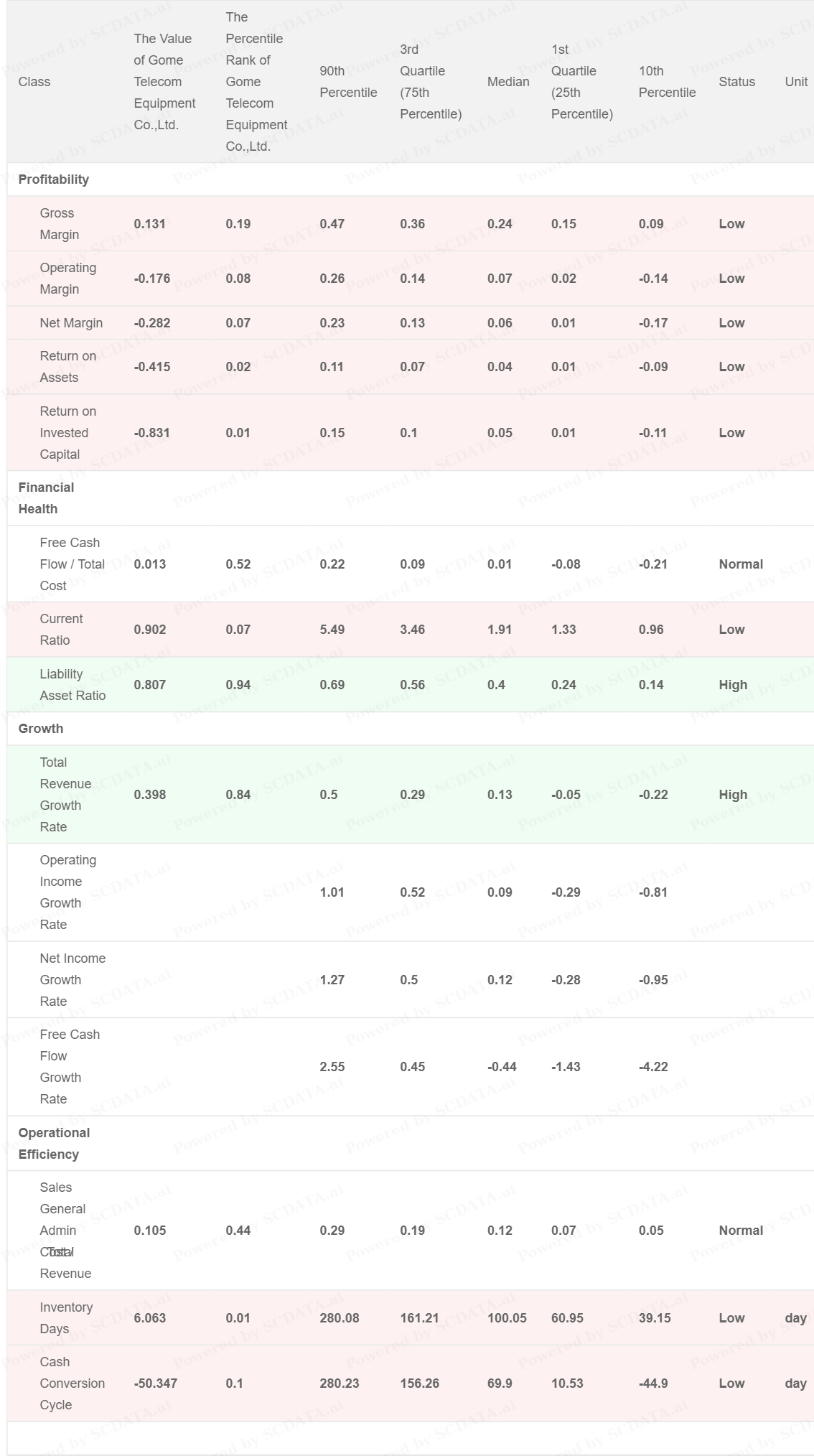 Gome's profitability in the industry is low, with low margins in all categories. low ROA and Return on Invested Captial are evidence of Gome's ability to generate returns on assets and capital. Gome's current ratio also does not perform very well, indicating that current assets provide little protection for current liabilities. Gome's high gearing ratio indicates that Gome has a high level of debt. Gome's high revenue growth rate proves that the company is in a good position to grow. In addition, Gome's inventory days and cash conversion cycle are both lower than the industry, indicating that Gome has better liquidity.