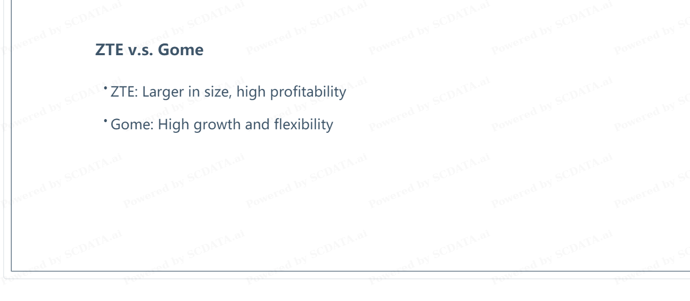 In terms of corporate scale, ZTE greatly exceeds Gome on all fronts, including total revenue, gross profit, net incme,profit before tax, and operating income or loss. .In terms of the nature of the enterprise, Gome belongs to the private sector, while ZTE belongs to the public-private partnership of state-owned enterprises. The nature of the enterprise also partly reflects the reasonableness of the scale, because the government will give more support to state-owned enterprises to help the company develop.