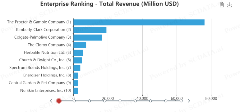 P&G came in first with far more revenue than any other competitor, followed by Kimberly-Clark in second and Colgate in third, with the fourth Clorox being about half of Colgate's revenue.