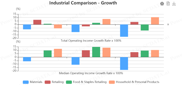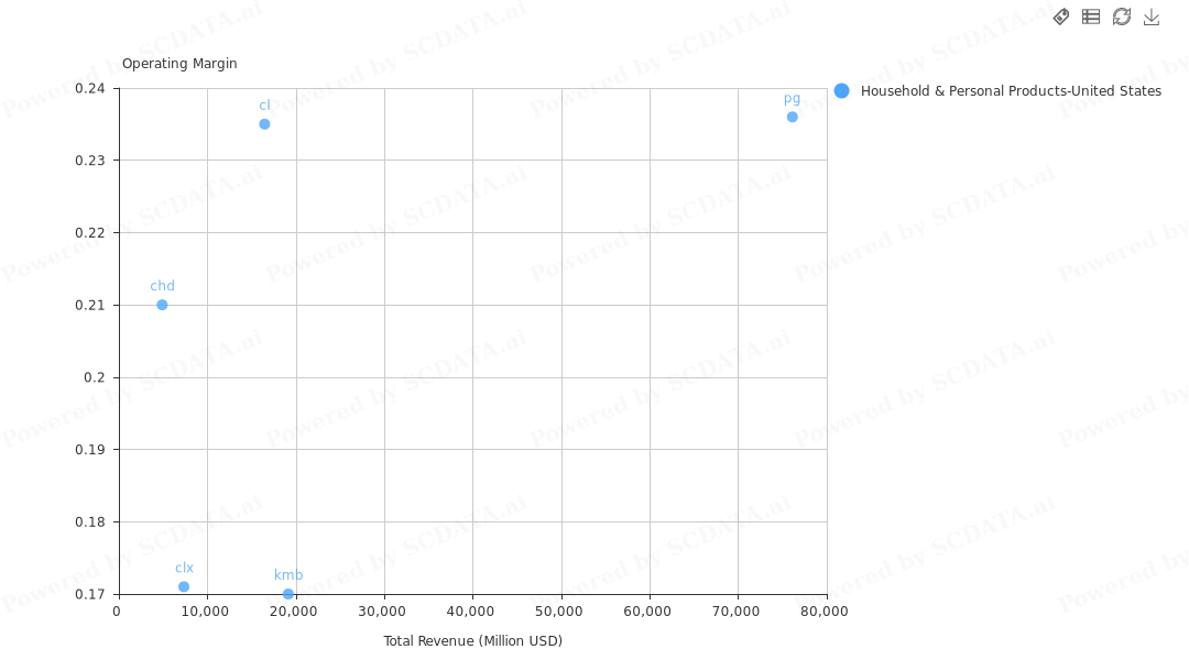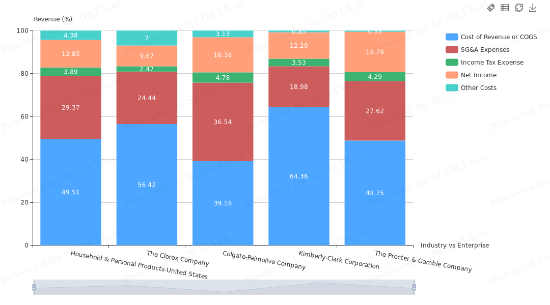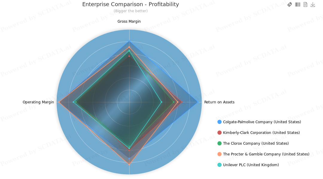 Colgate's operating income was slightly above the industry average. P&G maintained its large scale and high profitability, while Clorox and Kimberly-Clark performed slightly below the industry average.