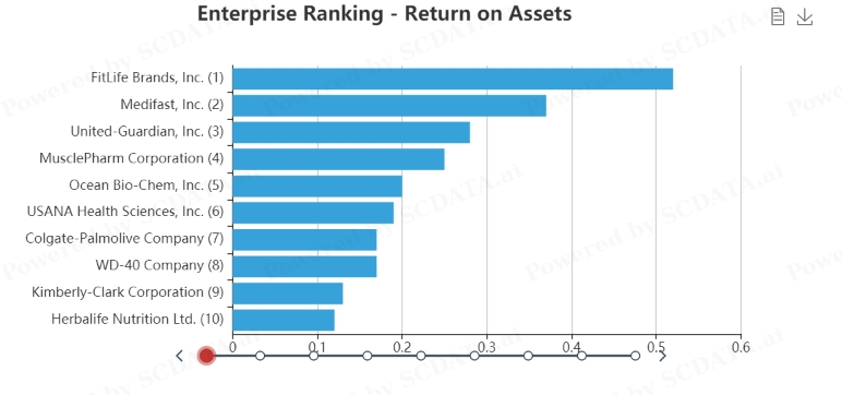 Colgate-Palmolive ranks fourth with an ROA of 0.17. Kimberly-Clark is 0.13, P&G is 0.12, and Clorox 0.11.