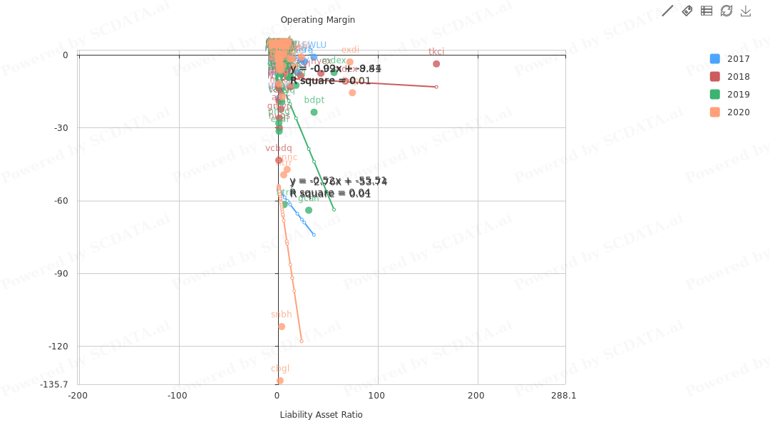 A higher liability asset ratio may lead to a lower operating margin(2018, 2019, and 2020, SP500only).