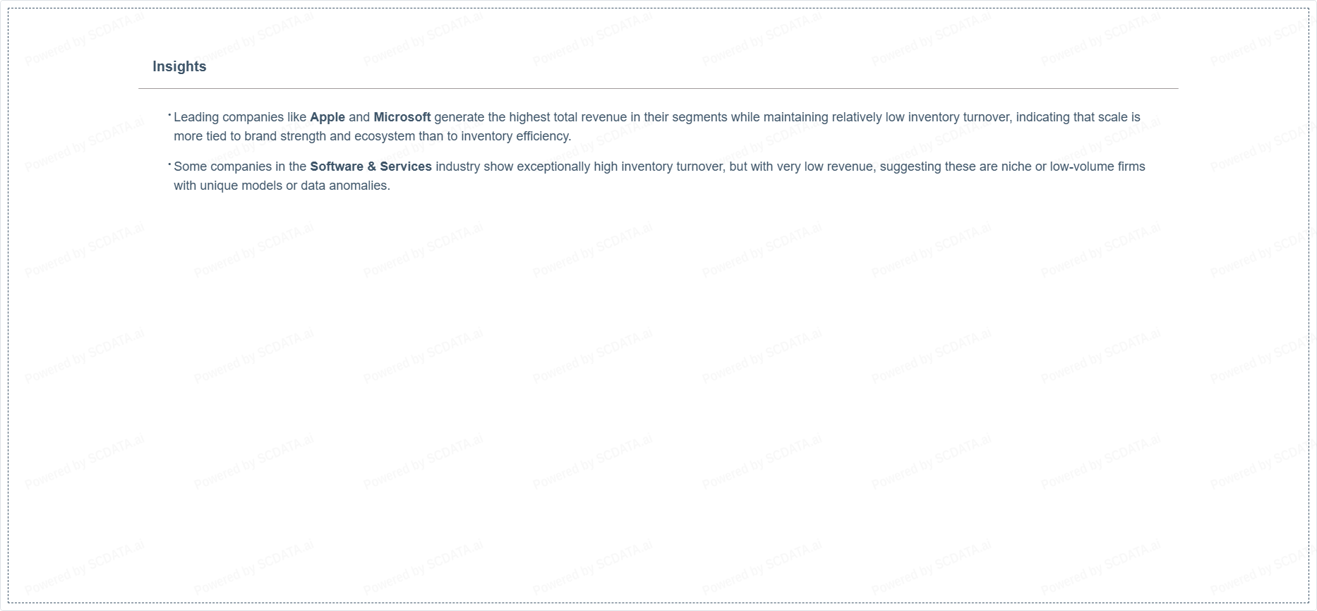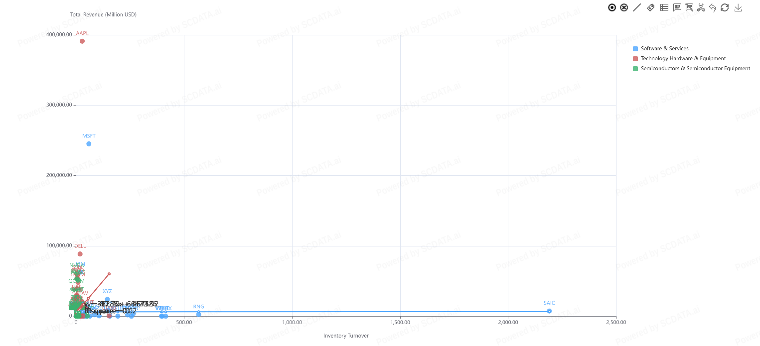 Leading companies like Apple and Microsoft generate the highest total revenue in their segments while maintaining relatively low inventory turnover, indicating that scale is more tied to brand strength and ecosystem than to inventory efficiency.