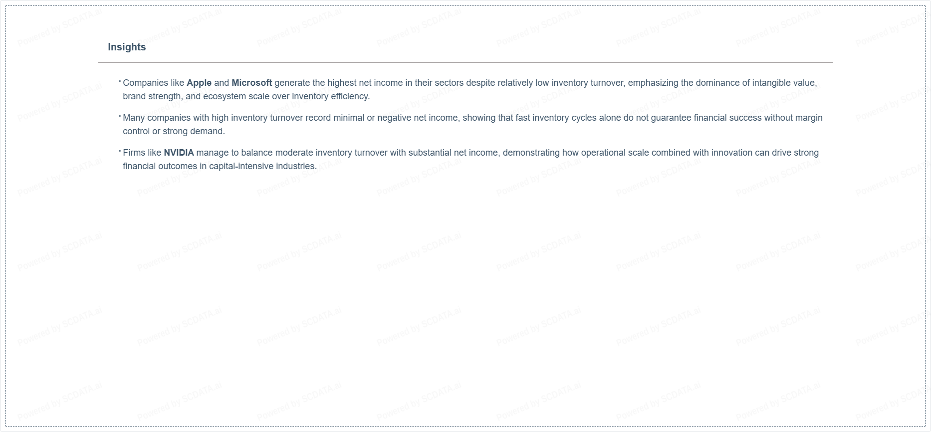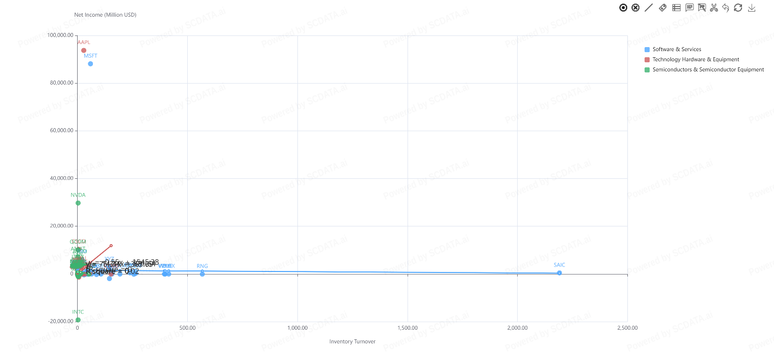 Companies like Apple and Microsoft generate the highest net income in their sectors despite relatively low inventory turnover, emphasizing the dominance of intangible value, brand strength, and ecosystem scale over inventory efficiency.