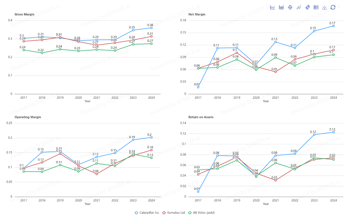 Profitability & Efficiency Trends: Caterpillar vs Komatsu vs Volvo (2017–2024)