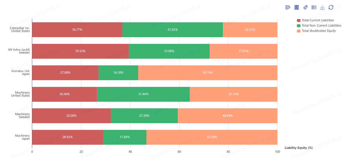 At the industry level, U.S. Machinery (current ≈26.46%, non‑current ≈37.84%, equity ≈35.70%) looks broadly balanced, Sweden Machinery shows higher equity ≈40.64% with current ≈32.08%, and Japan Machinery is equity‑strong ≈53.39% with lighter long‑term debt ≈17.69%. For suppliers, these patterns signal regional norms: equity‑strong environments usually support stable, long‑term partnerships, while higher current‑liability mixes often drive lean inventories, sharper schedule control and more frequent term reviews.