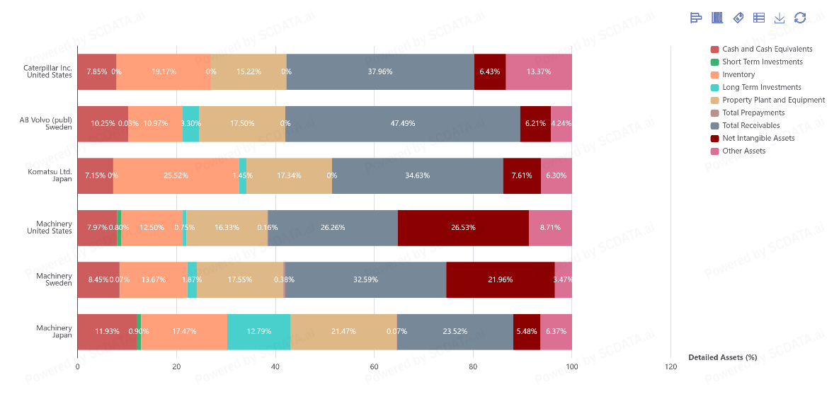 Detailed Asset Composition: Machinery Industries (Japan, Sweden & USA) vs Caterpillar, Volvo & Komatsu
