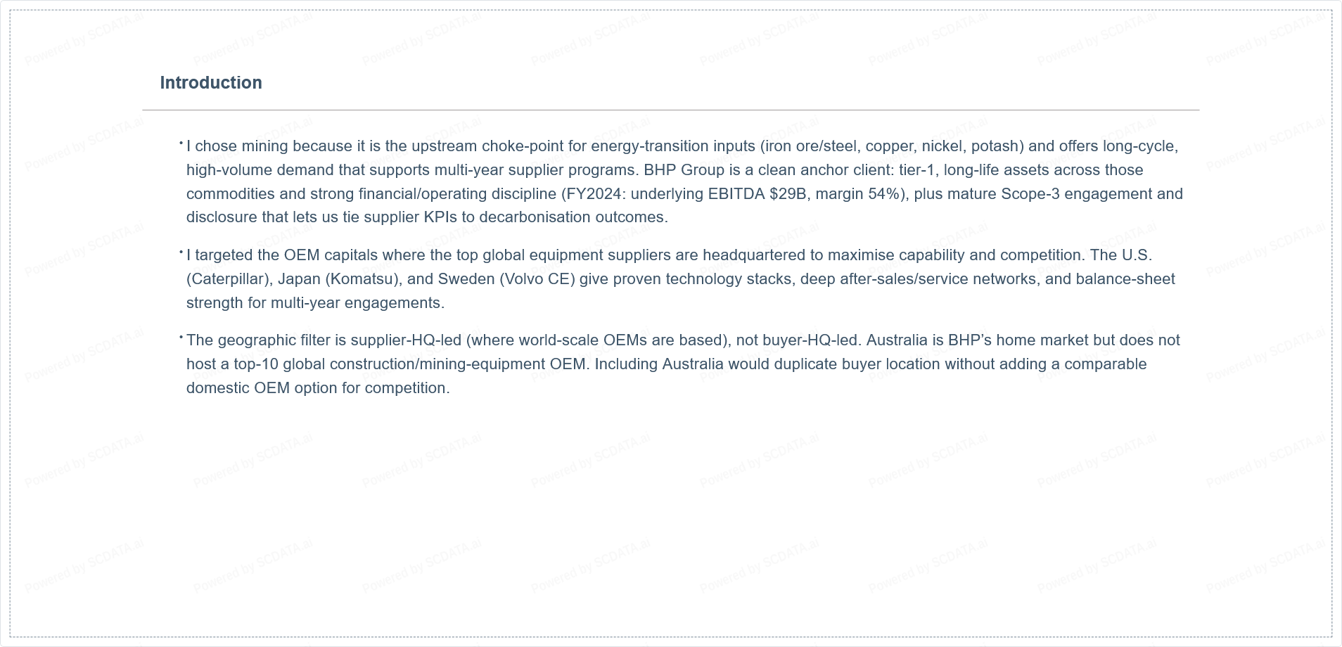 These patterns imply that BHP, with its more balanced structure and stronger net‑income share, tends to run structured cost programs, expects clear value‑engineering commitments, and has a greater ability to support long‑term supplier partnerships. Fortescue’s higher COGS dependence suggests suppliers must focus on efficiency, logistics performance, and predictable operations, with tighter tolerance for cost swings. South32’s cost‑heavy profile means suppliers may encounter firmer price scrutiny, lean budgets, and stronger pressure to deliver competitive landed‑cost outcomes.