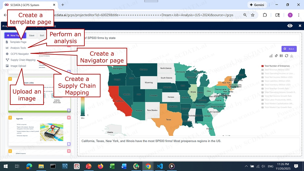 You can create a new page by clicking on “New Page”. On this new page, you can choose from the following options: template page, analysis tools, navigator, supply chain mapping and upload image. Let me explain each option one-by-one.